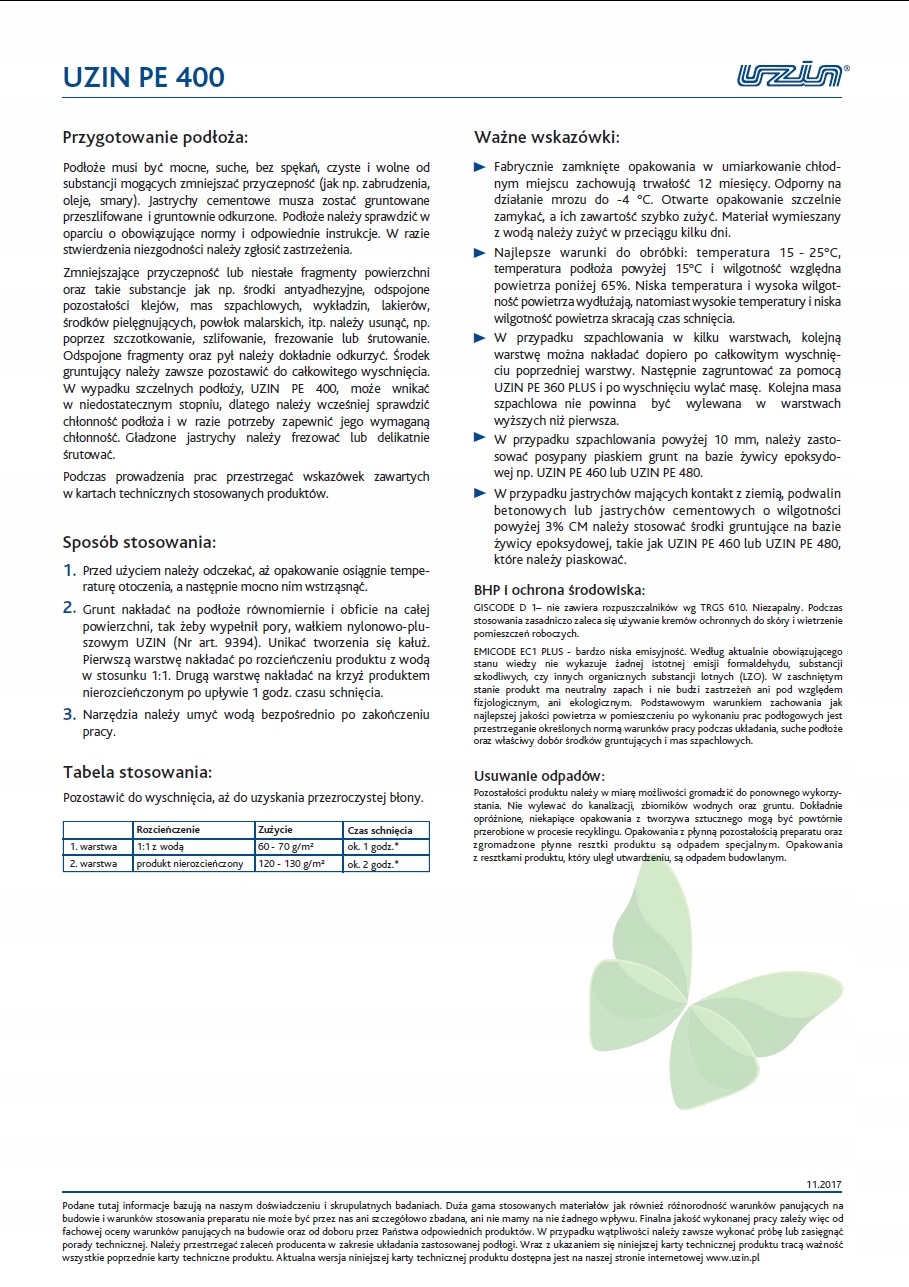 Napisz pierwszą opinię o „Grunt błyskawiczny UZIN PE 400 12 kg”