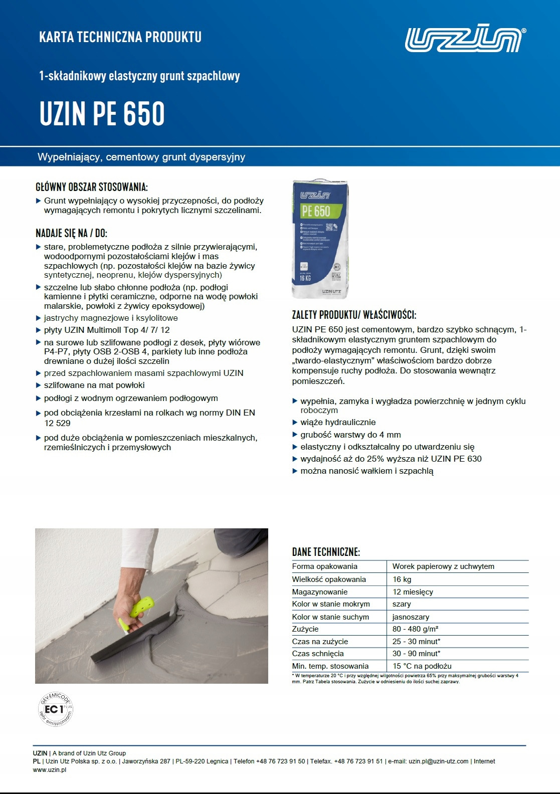 Szukasz niezawodnego sposobu na wyrównanie trudnego podłoża? Chcesz jednocześnie zagruntować i zaszpachlować starą posadzkę? Ponadto zależy Ci na błyskawicznym czasie schnięcia? Dlatego elastyczny grunt szpachlowy UZIN PE 650 to Twój absolutnie najlepszy wybór. Dzięki temu zyskujesz innowacyjny produkt, który niesamowicie ułatwia każdy remont. Co więcej, jego codzienne nakładanie jest bardzo szybkie i wygodne. Zatem wybierz profesjonalną chemię i zapomnij o pękających wylewkach.